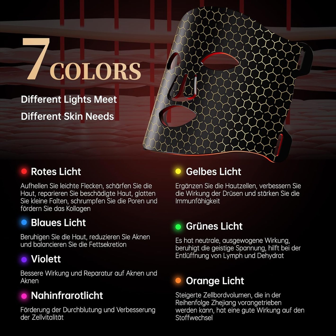 Unsere innovative Technologie kombiniert 7 Farben für maßgeschneiderte Hautpflege mit unvergleichlichem Komfort und Effizienz. Erleben Sie die Zukunft der Hautbehandlung in Ihrem eigenen Zuhause und genießen Sie strahlende Ergebnisse.
